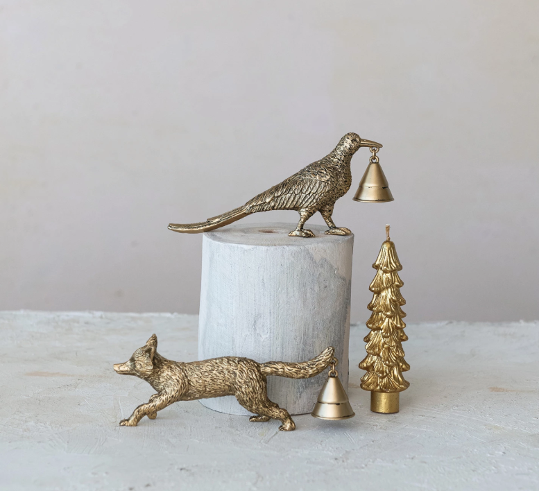 Apagavelas de aleación de zinc de 15 cm de largo x 7,6 cm de alto con forma de zorro o faisán, acabado dorado antiguo, 2 estilos.