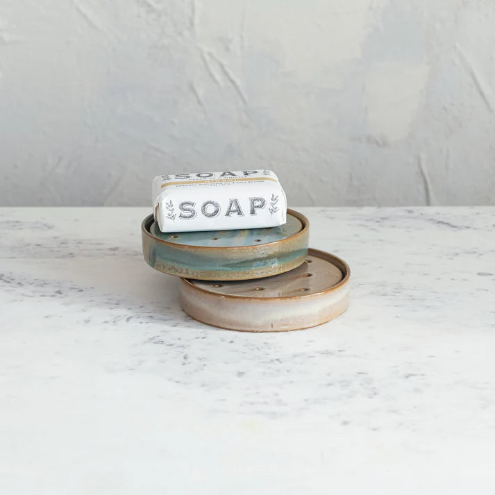 5" Rnd Stoneware Soap Dish w Removable Tray, 2 Colors