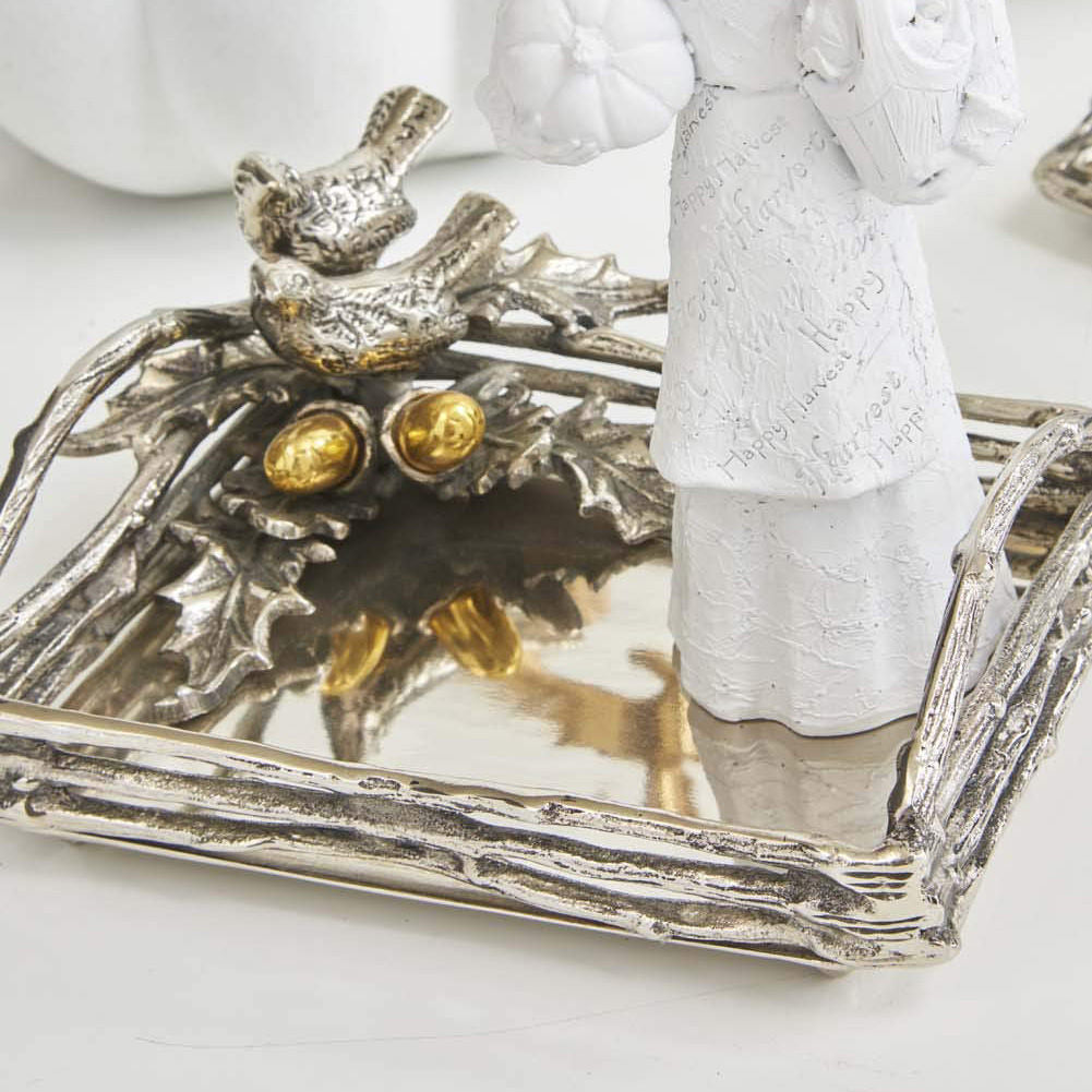 8.75 Bandeja de plata pulida con pájaros y hojas de roble
