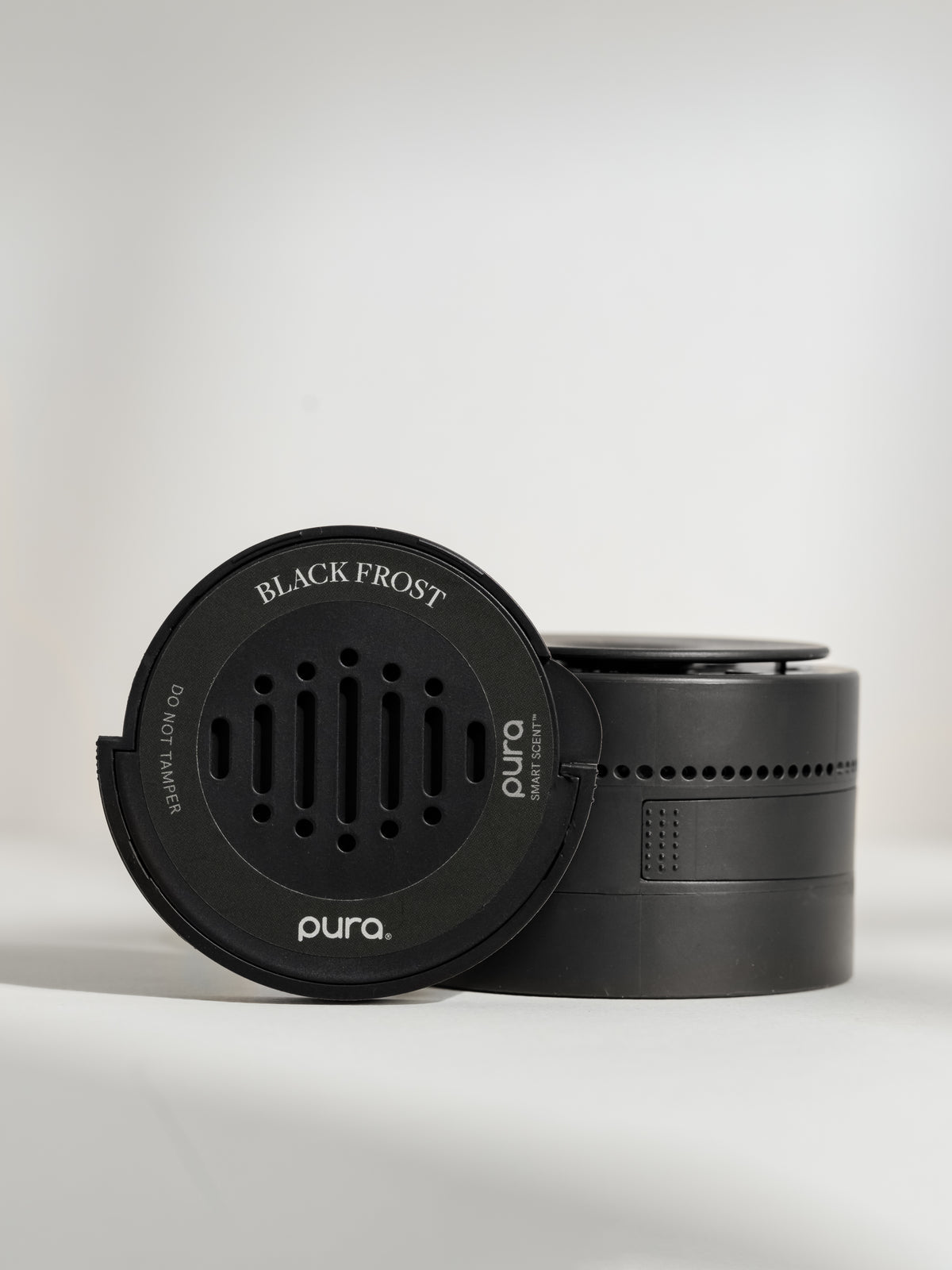 Black Frost es el aroma sutil de colonia que conoces bien, y es el más eficaz para eliminar los olores del automóvil: combina azafrán y coco con una mezcla amaderada y floral de jazmín, sándalo y madera flotante.