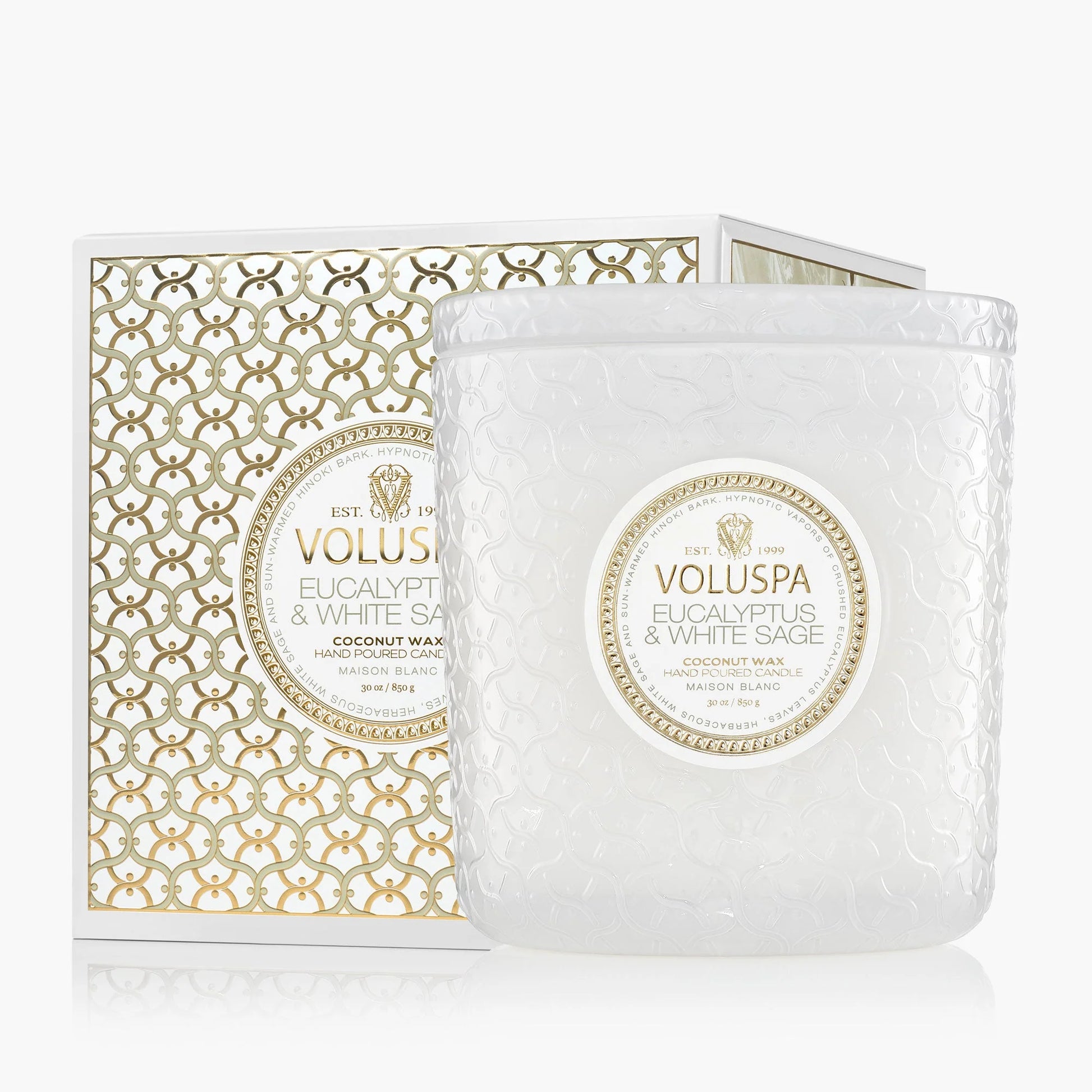 Inhala… y exhala. Rejuvenece tu cuerpo y alma con los vapores hipnóticos del eucalipto y la salvia blanca, que dejan paso a sus propiedades místicas y calmantes. Deja que las preocupaciones se desvanezcan con este aromático saludo al sol. Notas de hojas trituradas de eucalipto, cardamomo, salvia blanca herbácea y corteza de hinoki calentada por el sol crean una atmósfera de paz y vitalidad, iluminando sentimientos de renovación. Incorpora el eucalipto y la salvia blanca de Voluspa a tu rutina diaria. Namaste.