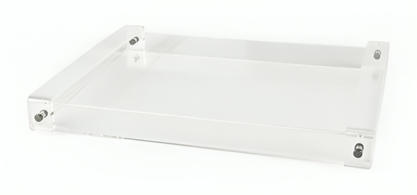 La bandeja para servir Lucite de Tizo Designs con asas modernas tiene asas suavemente curvadas diseñadas en acrílico transparente a juego, lo que le da elegancia sofisticada a su tocador o bar.