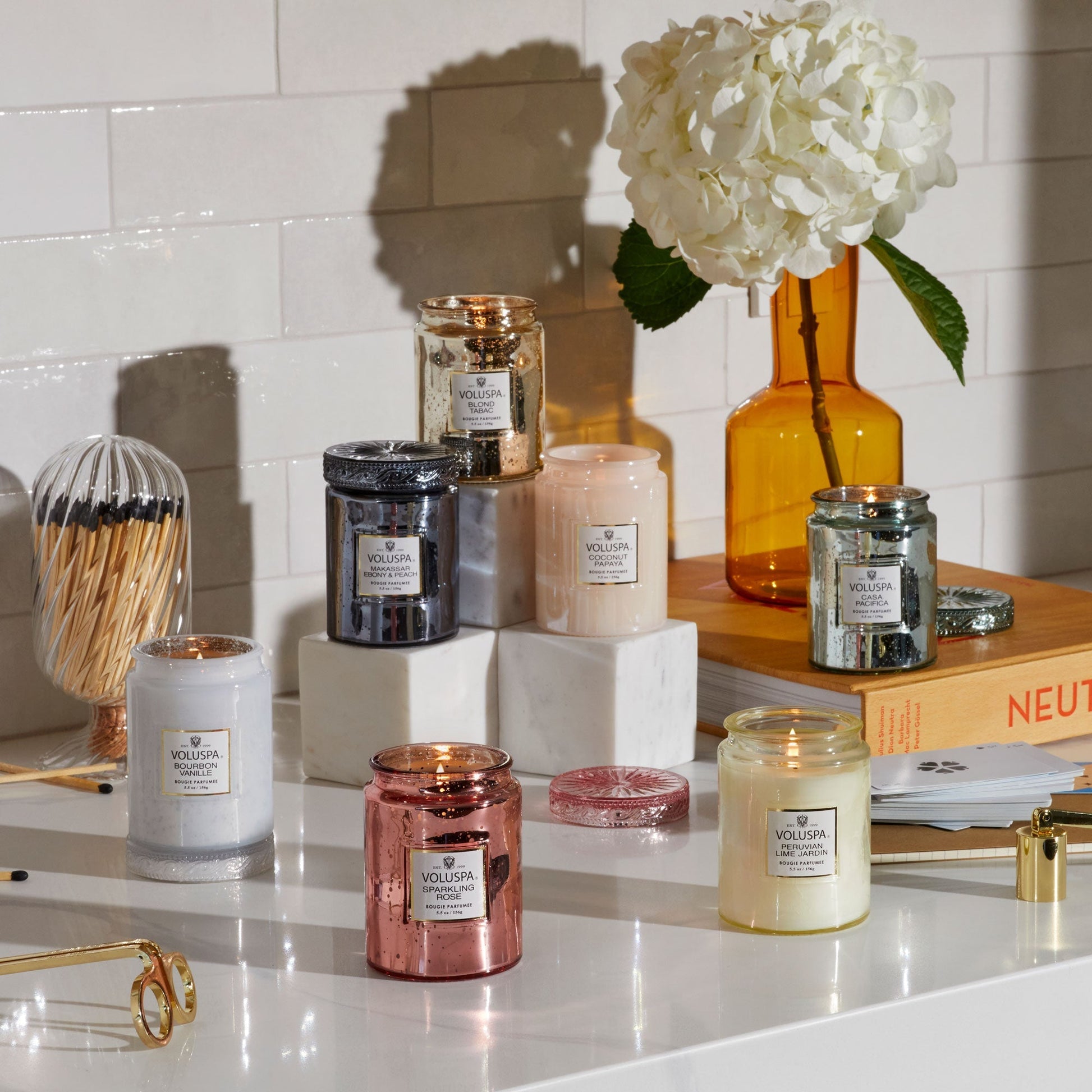 Disfrute de la profunda y sensual oscuridad de la madera combinada con la fruta. Inhale el aroma del sólido ébano negro y la caoba con la suculencia del melocotón maduro y la flor del manzano. Como descubrir un desbordante huerto frutal en el más profundo y oscuro bosque encantado: imagina esta irreverente combinación de aromas, tan atractiva en su oscura, inesperada y jugosa delicia. Un clásico de Voluspa, no dude en elegirlo.