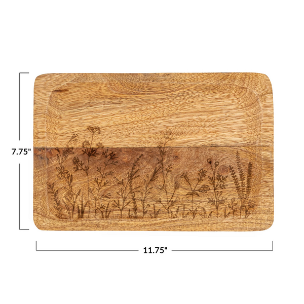 Bandeja de madera de mango con botánicos grabados con láser
