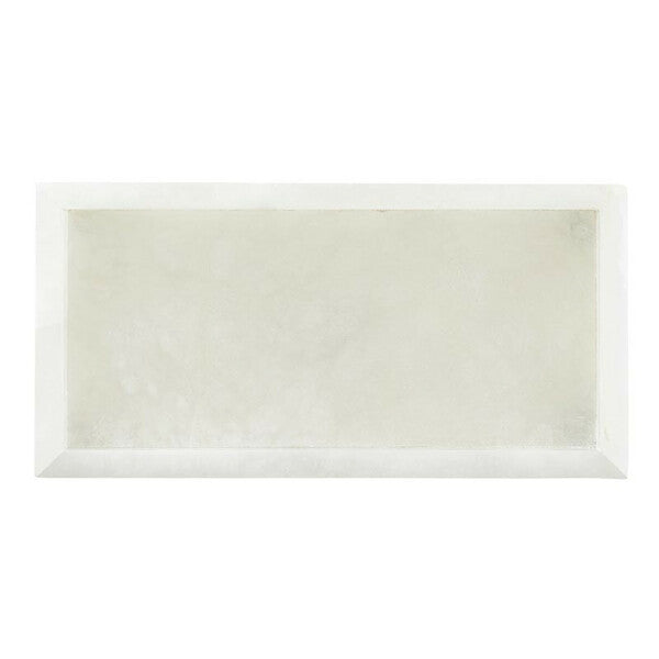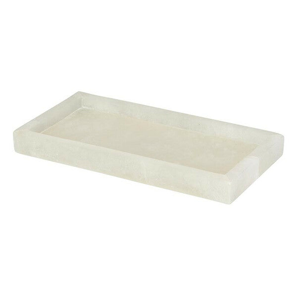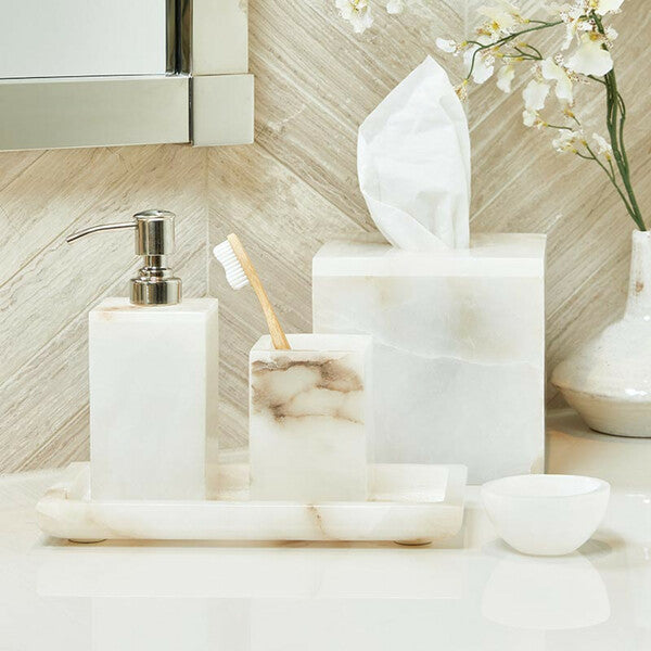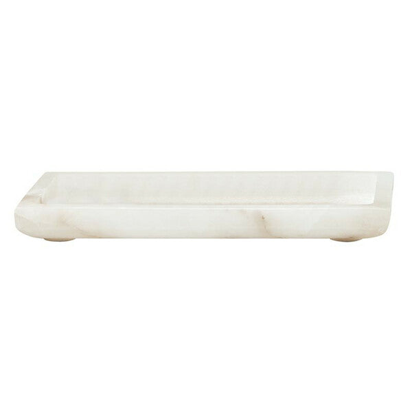 Esta bandeja de alabastro tiene el tamaño perfecto para exhibirla en el tocador de su baño.