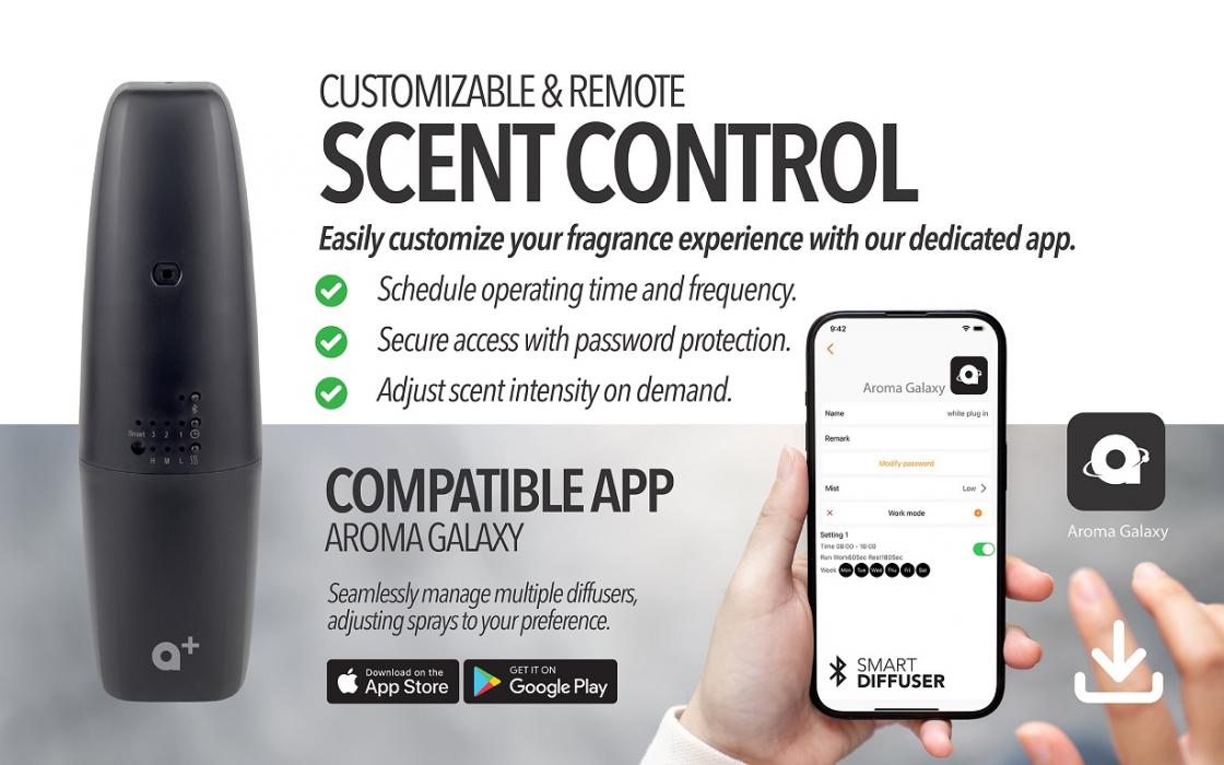 - Cobertura de hasta 1000 pies cuadrados - Controlado por Bluetooth - 3,25" de ancho x 11,25" de alto - La tecnología de difusión de aire frío convierte los aceites esenciales en partículas finas secas para una cobertura constante manteniendo la pureza del aroma - No deja residuos - Seguro para mascotas, niños y muebles - Se adapta a botellas de 60 y 120 ml - La niebla seca no deja residuos.
