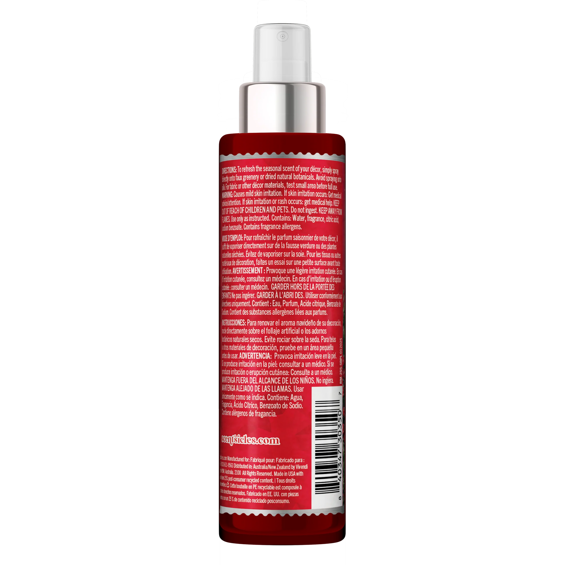 El NUEVO spray Scentsicles Scent Mister para decoración de temporada es el refrescante perfecto para cualquier habitación, coche o decoración. Simplemente rocía tu árbol artificial, corona o guirnalda, y cualquier planta, flores o arreglo botánico seco, y dale vida a tu decoración con el auténtico aroma a pino recién cortado. Incluso puedes rociarlo sobre árboles de Navidad naturales; su fórmula a base de agua ayudará a hidratarlos. Es el refrescante perfecto para refrescar el aroma antes de recibir invitados, la mañana de Navidad o en espacios sin un árbol aromático.