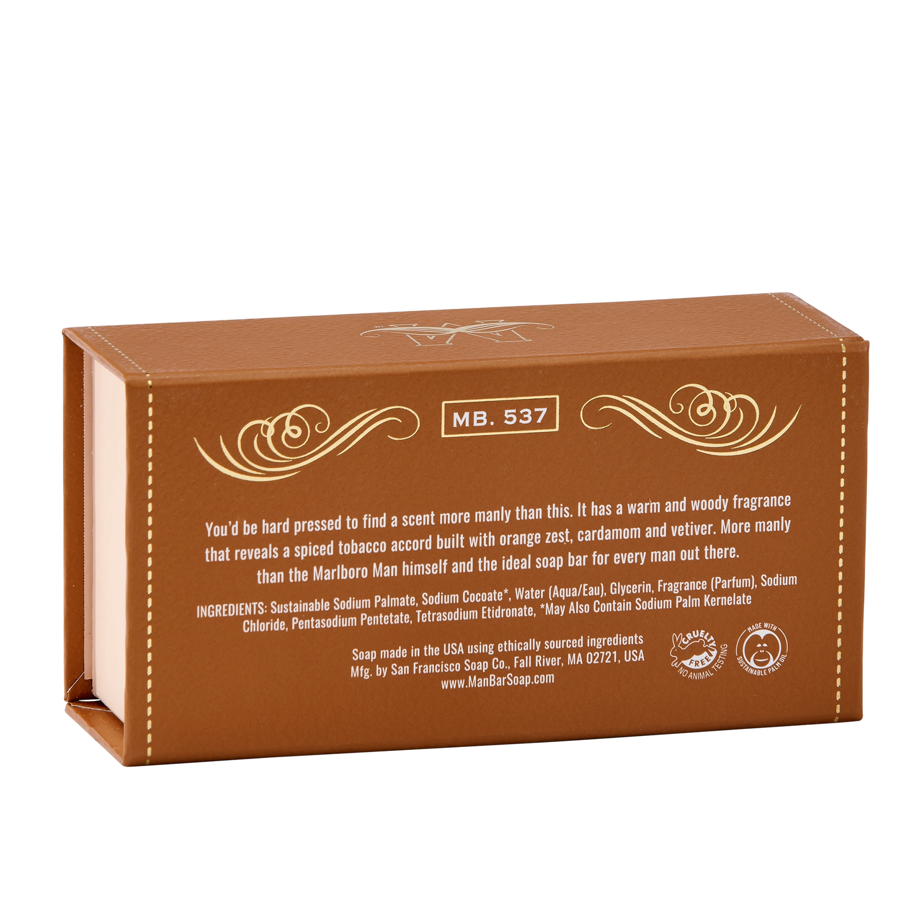 Te resultará difícil encontrar un aroma más masculino que este. Tiene una fragancia cálida y amaderada que revela un acorde especiado de tabaco elaborado con ralladura de naranja, cardamomo y vetiver. Más masculino que el propio Marlboro Man y la pastilla de jabón ideal para todos los hombres.