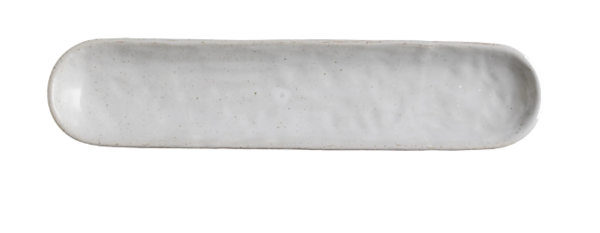 Sirva una variedad de especias, salsas o mantequillas aromatizadas en estos platos largos de gres. El diseño estrecho los hace fáciles de manejar y agrega estilo a la configuración general de la mesa. También se pueden colocar junto a platos de servir para colocar sus utensilios a juego.