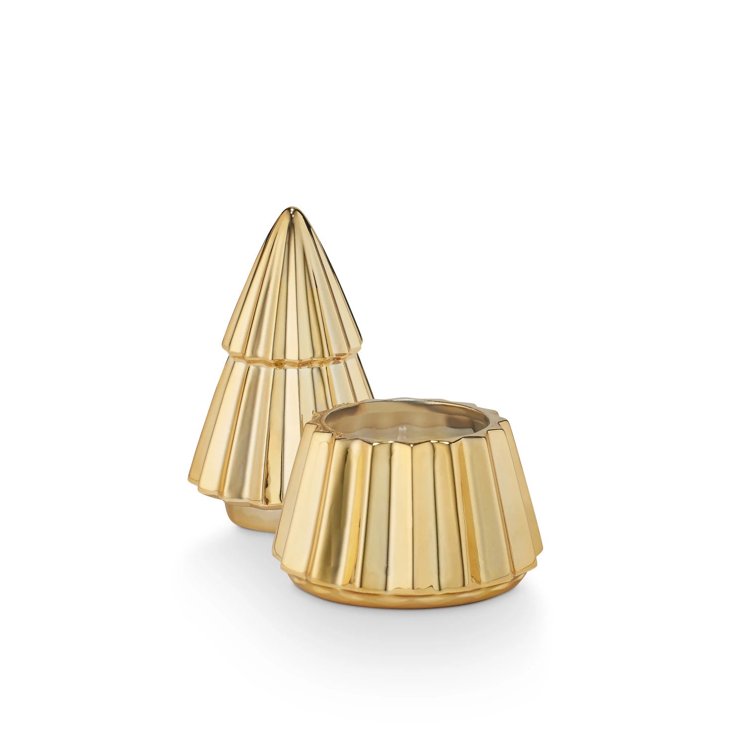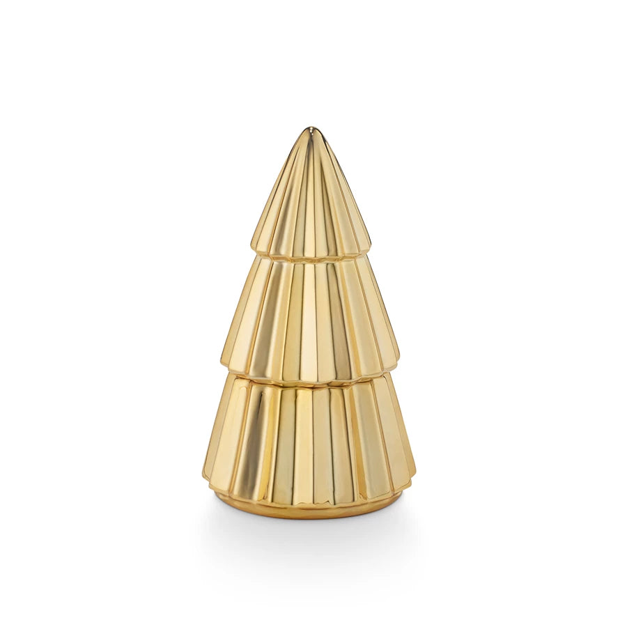 Vela de cerámica con diseño de árbol dorado y sabor a sidra caliente probada y auténtica
