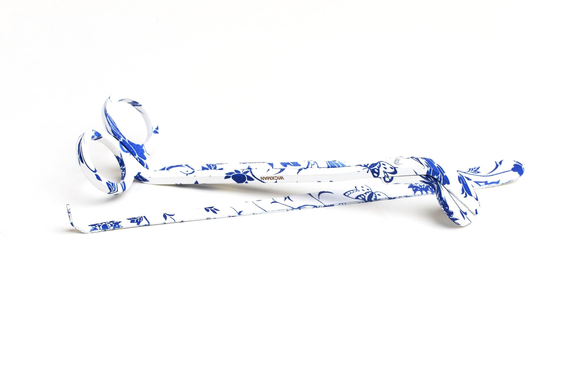 Cortador de mechas y cucharón de mechas con diseño de naturaleza azul y blanco